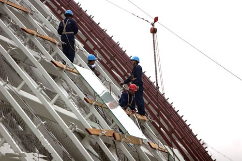 西安玻璃幕墻能防雷?怎么防?下面小編來給你說說玻璃幕墻的防雷措施。通常建筑物的防雷裝置有三部分:接閃器、引下線和接地裝置。在玻璃幕墻的防雷設計中,應充分利用建筑物的這些裝置,將幕墻豎向龍骨、橫向龍骨和建筑物防雷網(wǎng)接通,連成一個防雷整體,把玻璃幕墻獲得的巨大雷電能量,通過建筑物的接地系統(tǒng),迅速地輸送到地下,保護玻璃幕墻和建筑物免遭雷電破壞的作用。高層建筑玻璃幕墻的頂部的女兒墻的蓋板,是人為地設立的良好導體,它沿建筑物女兒墻的頂部分布,其電場強度很大。雷電先驅很自然地被吸引過來,是雷擊率最大的部位。...